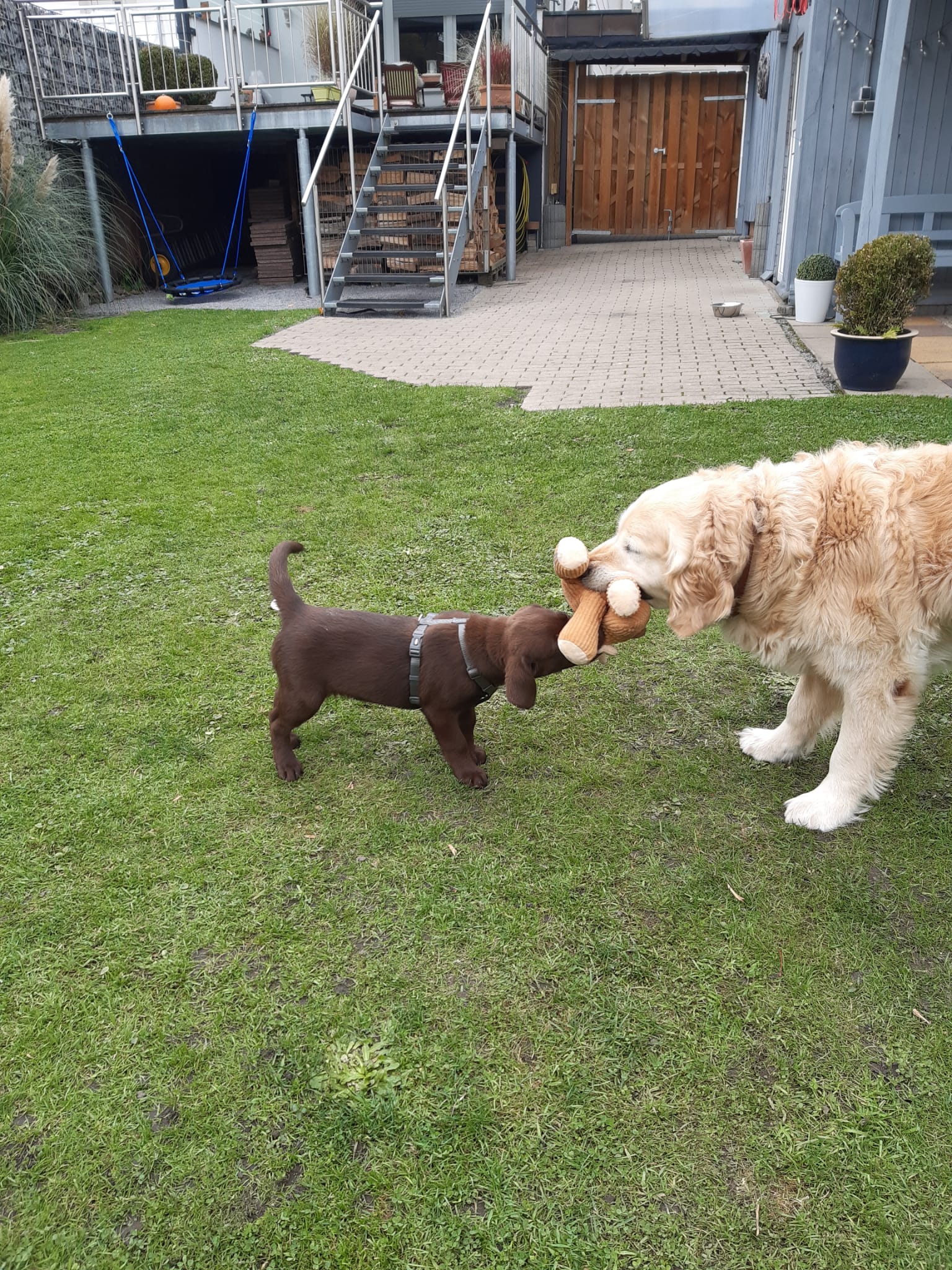 Ein interessantes Video von Ende Oktober'22 von dem kleinen Gustav, der von seinem älteren Kumpel Hermann (aus unserer Golden Retriever Zucht :) ) seine Grenzen aufgezeigt bekommt...klasse!!!