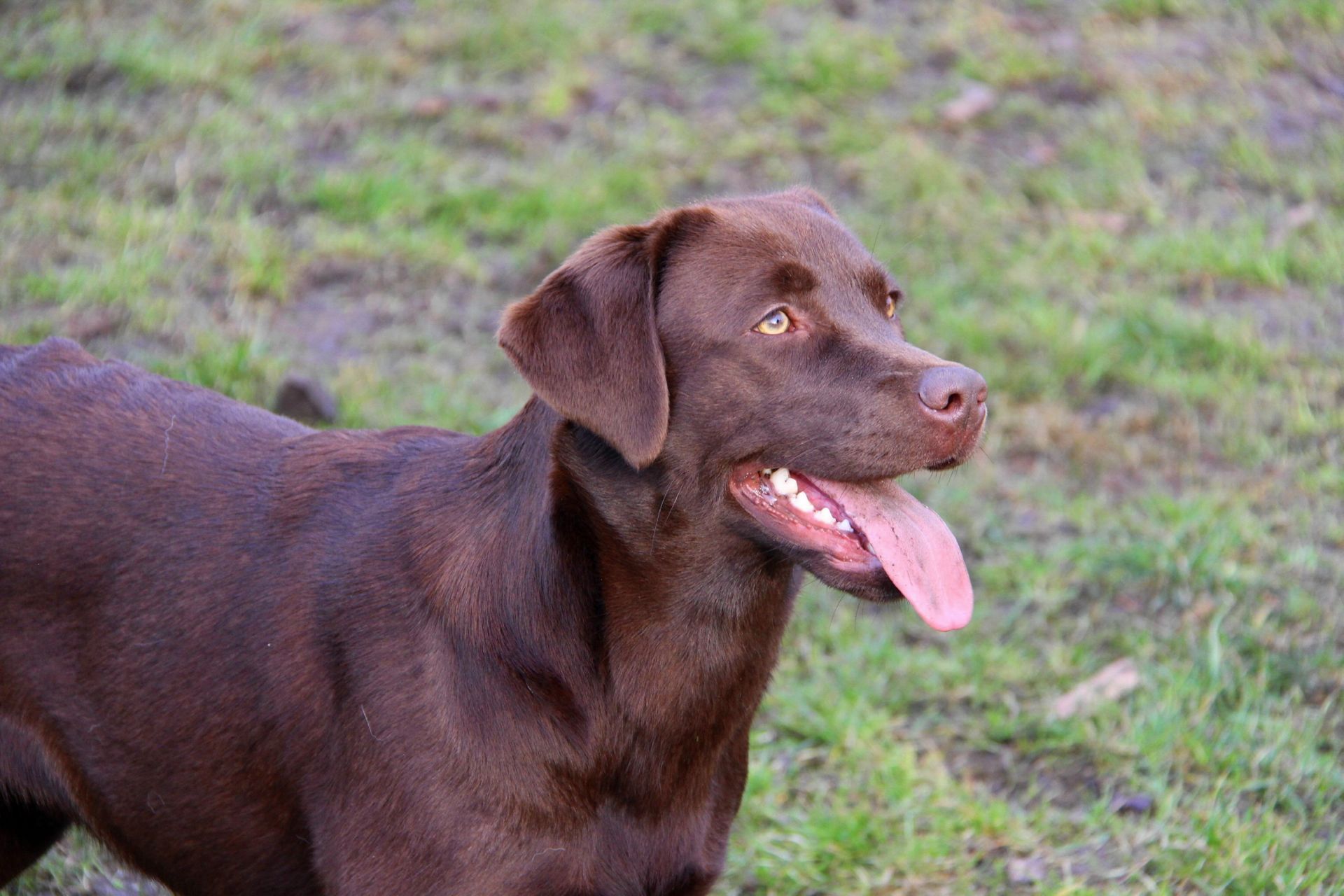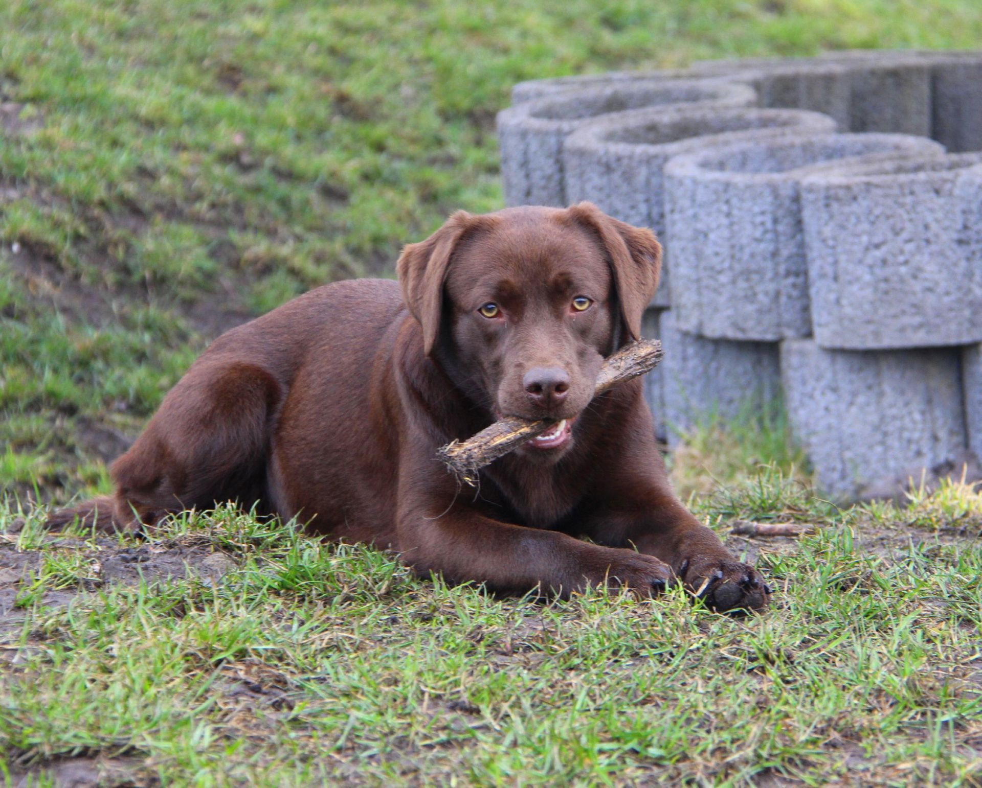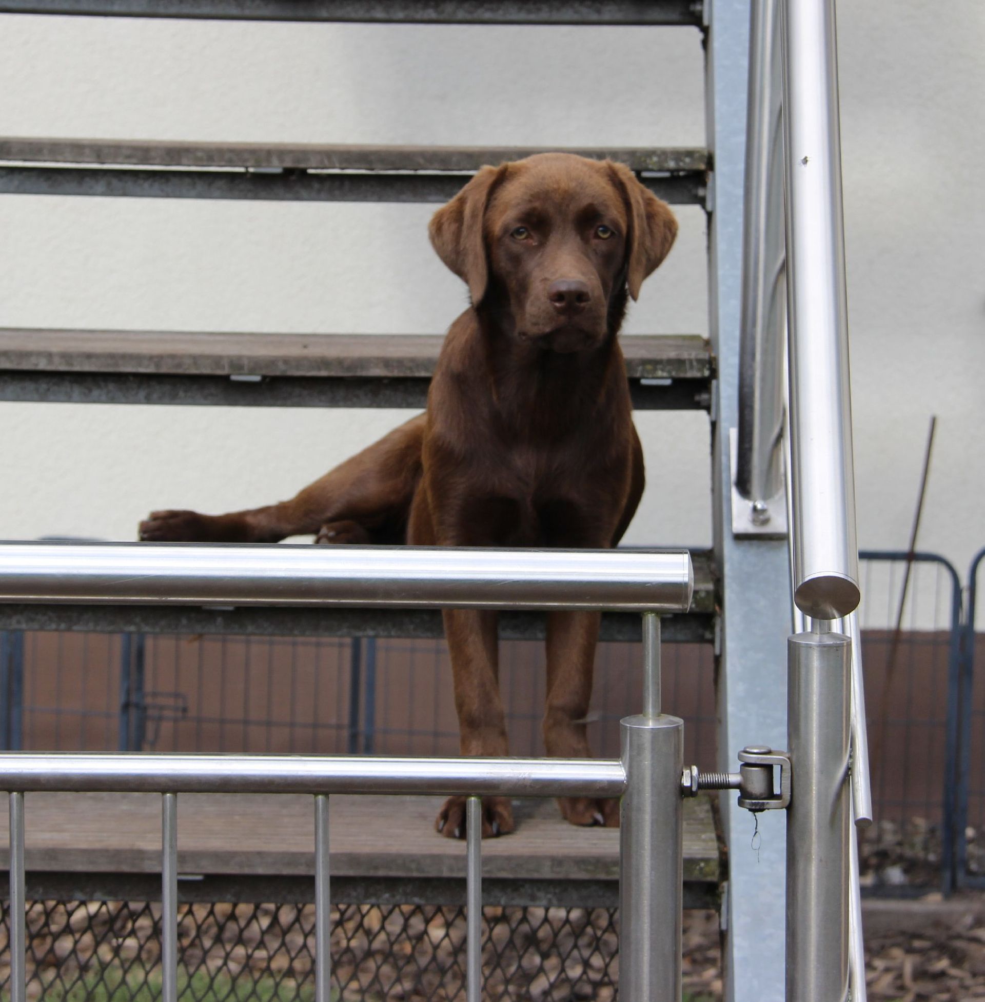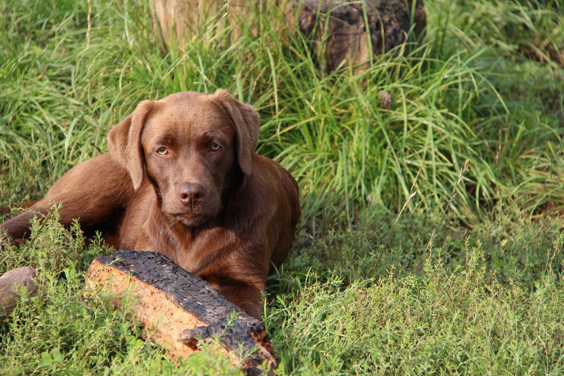 Bibi ist eine etwas kleinere, aber trotzdem sportliche braune Hündin, die für ihr Leben gern apportiert, schwimmt und immer offen für neue Dinge ist.