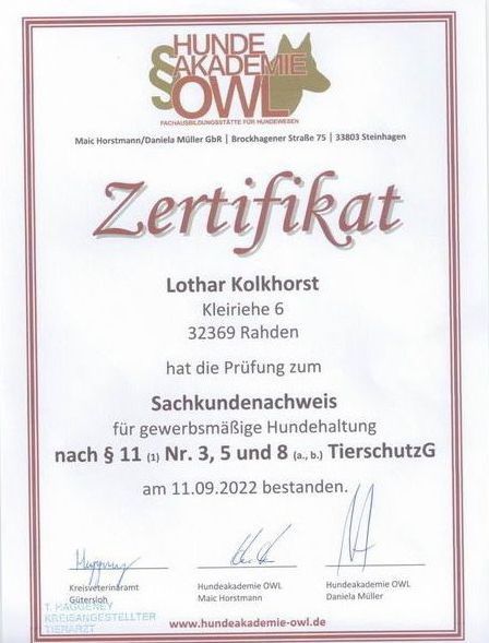 die Papiere/Ahnentafeln unserer Welpen ausstellt.