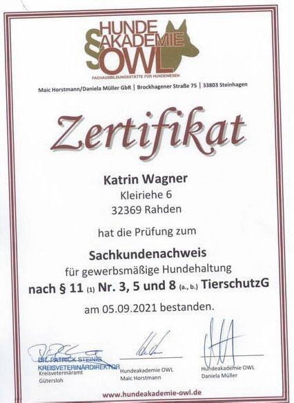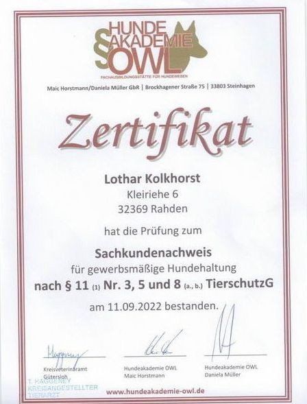 Nun auch endlich unsere neue Zwingerschutzurkunde mit aktueller Adresse ;)